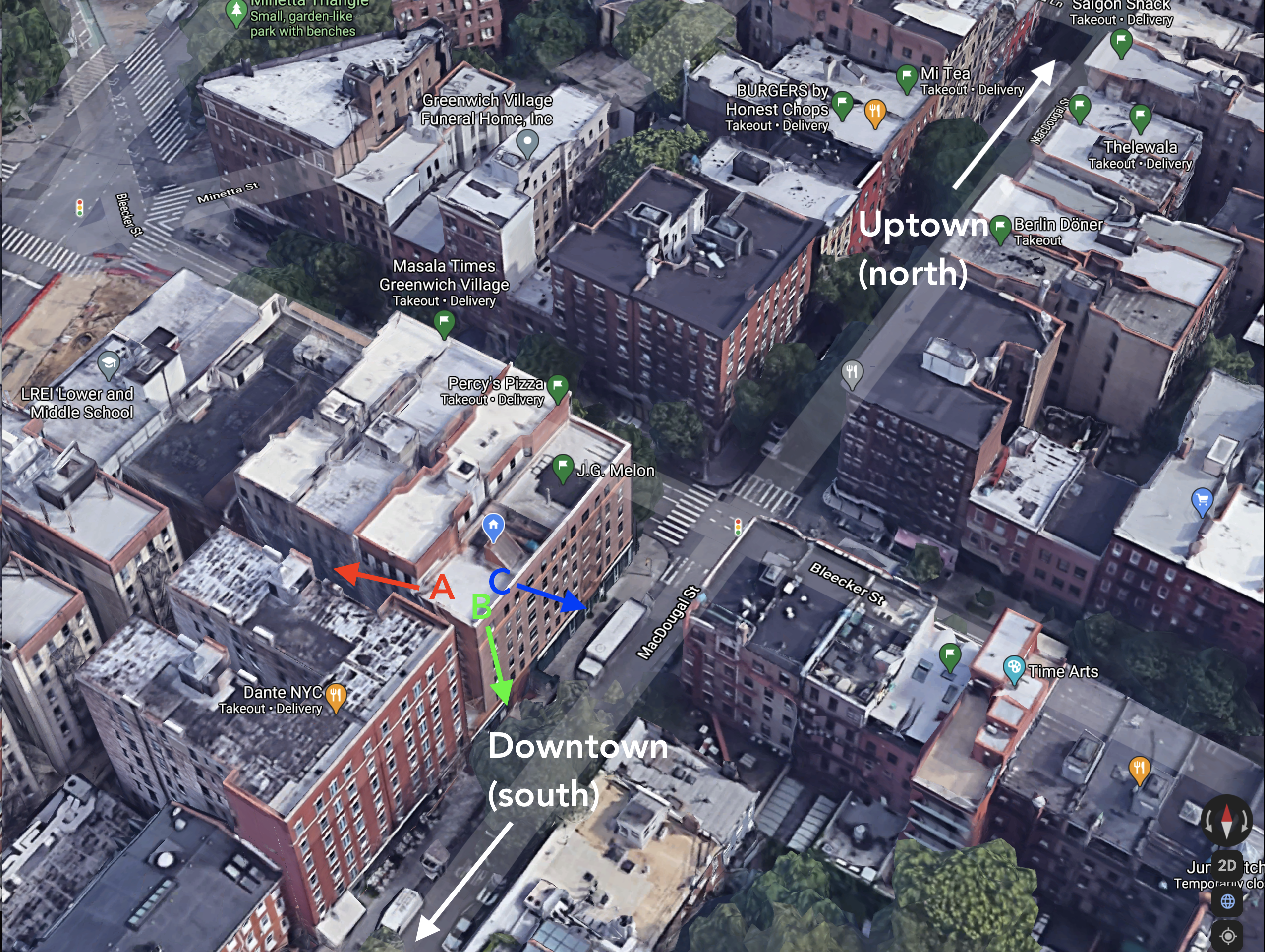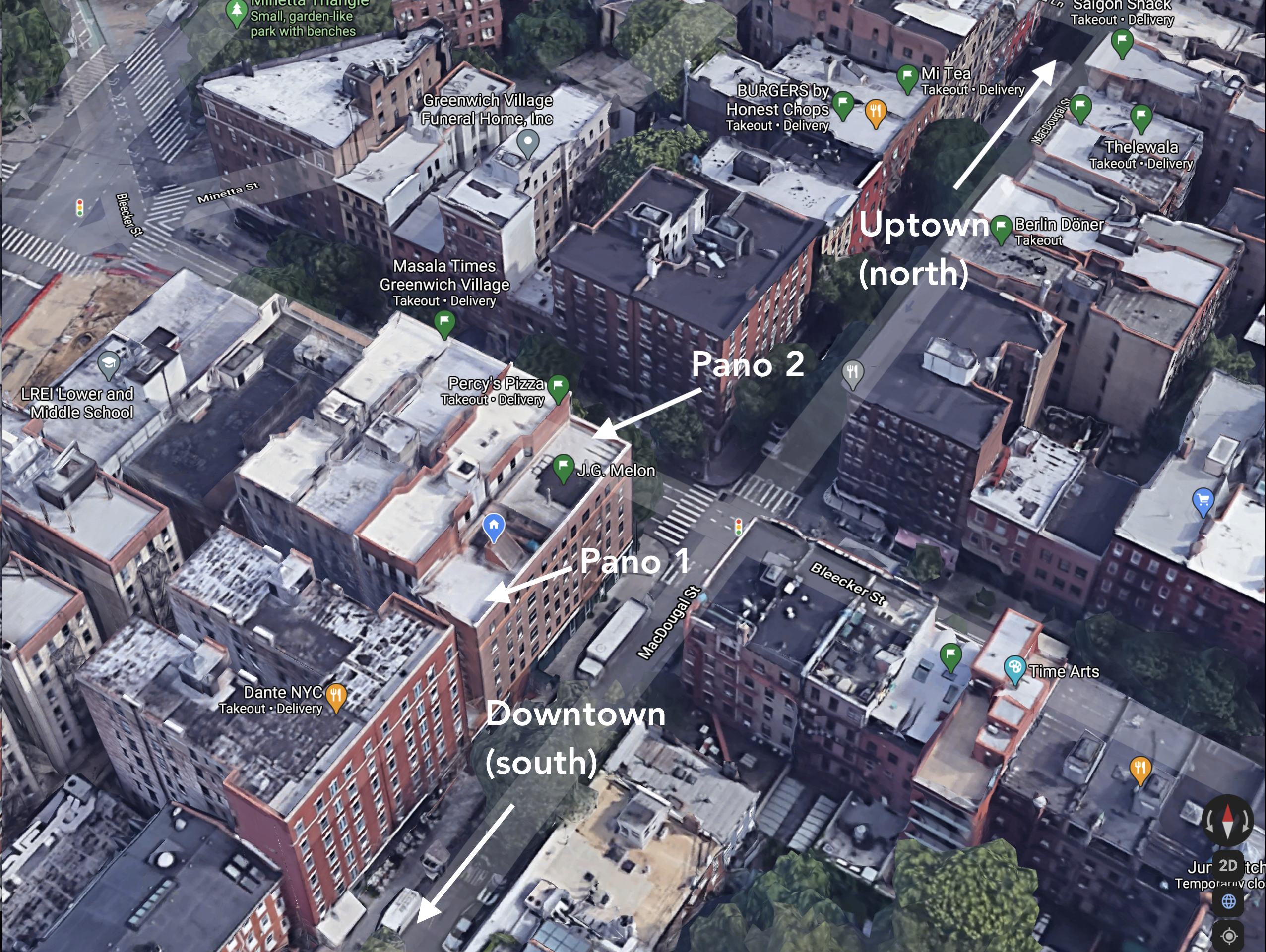 read moreI finally got a chance to take some panos for you from 89 MacDougal Street (Manhattan). It would be super awesome to expand the network to the Village. Hopefully there's LoS to one of the nodes and the signal isn't too attenuated at this distance. Even if not, I'd be happy to volunteer my efforts to help with the network if you need it. I love the mission and want to see NYC mesh grow. I'm a full-stack developer with a pretty solid understanding of networking (used to work at Cisco). I took two panos, one from each of the two corners of my roof that aren't obstructed by buildings. I've included the "Pano positions" image to show where I was standing on the roof for each pano. I've label north/east/south/west in accordance with the Manhattan streets (i.e. WTC would be due south of the empire state building). If you'd like me to relabel with magnetic cardinal directions, let me know. I think I may have identified supernode 1 in both the panos (labeled). My building is one of the taller ones in the area, so perhaps it could act as a hub? I see a number of "potential" nodes on the map around the Sullivan/Thompson street area to my west, and I have good LoS to all of those roofs. I took some "Bonus" photos as well in case they're at all helpful (in the accompanying "Bonus positions" file, the arrows are pointing in the direction I was facing when I took the photo). I also included all the photos unedited in the "Raw" folder in case you wanted to do your own annotations.