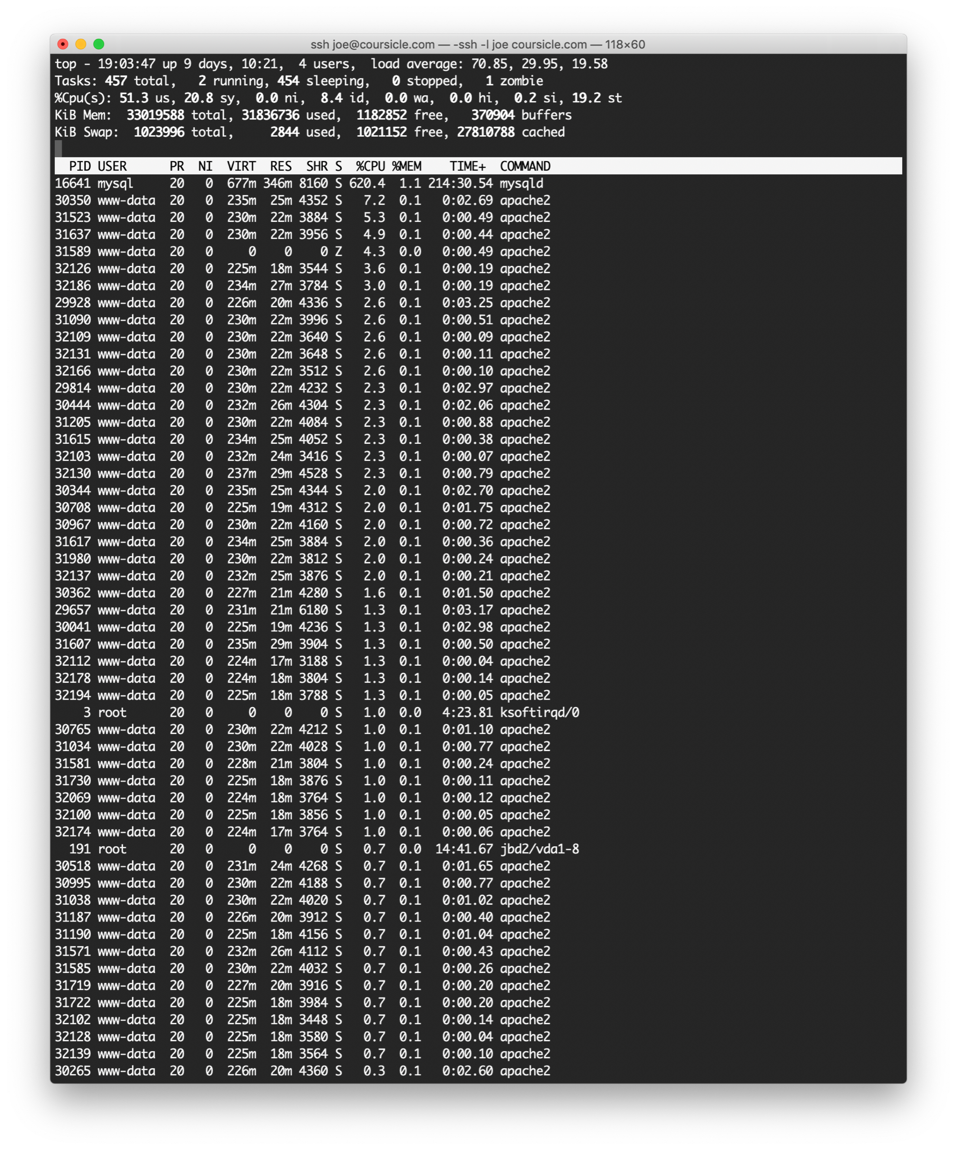 wrote: Hey Joe, Yeah, I remember you and I remember coursicle! Unfortunately, I'm heading out the door to an event soon, but here are my instant gut reactions to what you've said (keep in mind these are very "just off the top of my head")... First, I'd disable those scripts for a while if at all possible... anything to try to keep your site up. Then post some sort of message up for your users that you're working on some issues & that some features may be unavailable. I can't remember what language/framework you guys are using, but I'd check if there's a quick way to enable site-wide cacheing... ie. anything that let you serve (subsequent) GET requests without hitting the DB... these are often backed by memcache or redis; There are commercial tools for this too (https://www.cloudflare.com/ maaaay have something like this). Again... just giving your DB some space so you can debug it. This would hopefully buy you some time to figure out what's up w/ your indexes and your queries (I've not really touched Mysql in a long time, so I don't have much insight for you there other than googling: https://www.google.com/search?q=mysql+not+using+index ... which I'm sure you've done ;)) Lastly--and this may be something to plan for the future---look into running a Read replica of your DB. Essentially, this would let you have a copy of the DB from which you just run Reads... while scripts that may do a lot of heavy writes would write to read/write copy of the DB and won't impact those reads as much; sometimes your framework can even help with load-balancing across your DB instances; (of course.. you then may have to deal with issues like reading stale/old data... but that's often better than not having your site working). Apologies for hastily writing this & good luck... hopefully something in there helps. Brad Montgomery Lead Software Engineer Preteckt, Inc On Thu, Aug 29, 2019 at 5:12 PM Joe Puccio wrote: Hi Brad, Sorry for the late reply. Things are finally beginning to normalize now that we're nearing the end of the first week of the semester. I can't thank you enough for taking the time to look this over and send your thoughts. Sys administration can be so anxiety-ridden, but it makes me feel a lot better knowing that I have people to turn to when I'm really stuck. Much to our surprise, the cause wasn't MySQL not using an index, some table growing to a certain size that it could no longer fit in RAM, or our poorly written queries (although these certainly didn't help). It turned out to be our neighbors on the VPS decided to be abusive to the CPU that day. When we told our contacts at DigitalOcean about what we were seeing, they moved these customers to a different physical machine and things immediately went back to normal. We'll be moving over to a VPS with dedicated cores to prevent this sort of contention in the future (we didn't even know this sort of thing was possible; first time it's happened in 6 years with DigitalOcean). This does seem to explain one peculiar aspect of the crisis we were facing: the load average numbers were huge (100 or higher on an 8 core system), even though `top` didn't really show that we a whole bunch of processes heavily taxing the CPU. So, I suppose load average is one quality of the physical CPU that can bleed through the containerization a bit? Anyway, we're using this opportunity to re-examine our database and slow queries. I think a read replica of our database would certainly help since the vast majority of queries are reads, although we'll first probably want to sever our database from our web server first (right now they're on the same machine). Would you imagine seeing any slowdown after severing the two since queries will have to be forwarded over the network (granted, in the same datacenter) rather than made locally on the web server? Or is it easy to more than makeup for this latency in improved query performance via read replicas or other optimizations? Thank you again for your help. Best, Joe Puccio Co-founder, Coursicle joe@coursicle.com On Sep 3, 2019, at 6:19 AM, Brad Montgomery wrote: Hi Joe, Thanks for the follow up; Ken had shared some info about this earlier, and I'm very surprised this ended up being the problem. I'm happy DO support got you sorted out, though. I thought this kind of thing was effectively solved by the hypervisor a long time ago. I agree that emergency sysadmin work is super stressful; Automating as much of your system build / deploy process can help with that (e.g. being able to spin up a new web server in a reliable & repeatable manner in a minute or two is a lofty goal). I do think splitting your DB & webserver into separate hosts is a good idea, and if those are in the same data center, you can often configure them to communicate over a private network. Those networks are often gigabit speeds, so you shouldn't see much in the way of network latency. Once you've done this, a general rule of thumb is: Scale UP your DB server (as much CPU & RAM as you can afford) Scale OUT your web servers; More hosts & a load balancer in front of them will help you serve more http requests. This is easiest when you application servers don't need to store any state. Another technique used to help optimize that connection between your web server and your DB is to use connection pooling (I have no idea how to do this with mysql), but honestly.... I'd look into that later if/when you know latency and/or creating connections becomes a problem. Good luck! Brad Montgomery Lead Software Engineer Preteckt, Inc On Tue, Sep 3, 2019 at 3:22 PM Joe Puccio wrote: Hi Brad, Agreed, we were very surprised as well (although, very relieved to find out we didn't have to continue debugging our SQL queries under pressure). Got it, yeah we'll definitely be configuring use of a private network for our 10 or so Droplets; it's been on the back burner for a while but will be especially relevant when we sever the database from the web server, you're right. Thanks very m