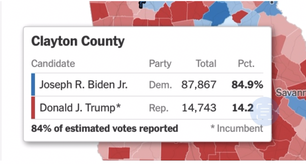 And in a beautiful moment: "the community flipping the switch from red to blue in Georgia was represented by the man who spent his life fighting for the right to vote. Rep John Lewis spent 34 years serving #ClaytonCoGA in Congress."
