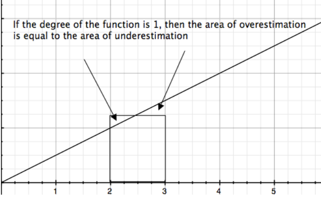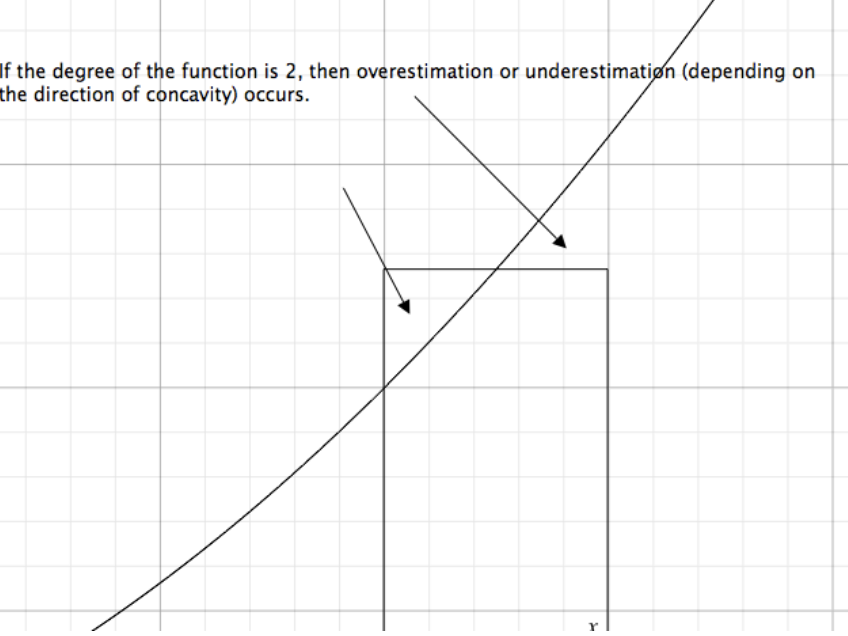 Now, what I’d like to think about is taking into account the concavity. Adding a constant of concavity (or subtracting depending on the direction of concavity) from the midpoint taken would allow for a more accurate integral.