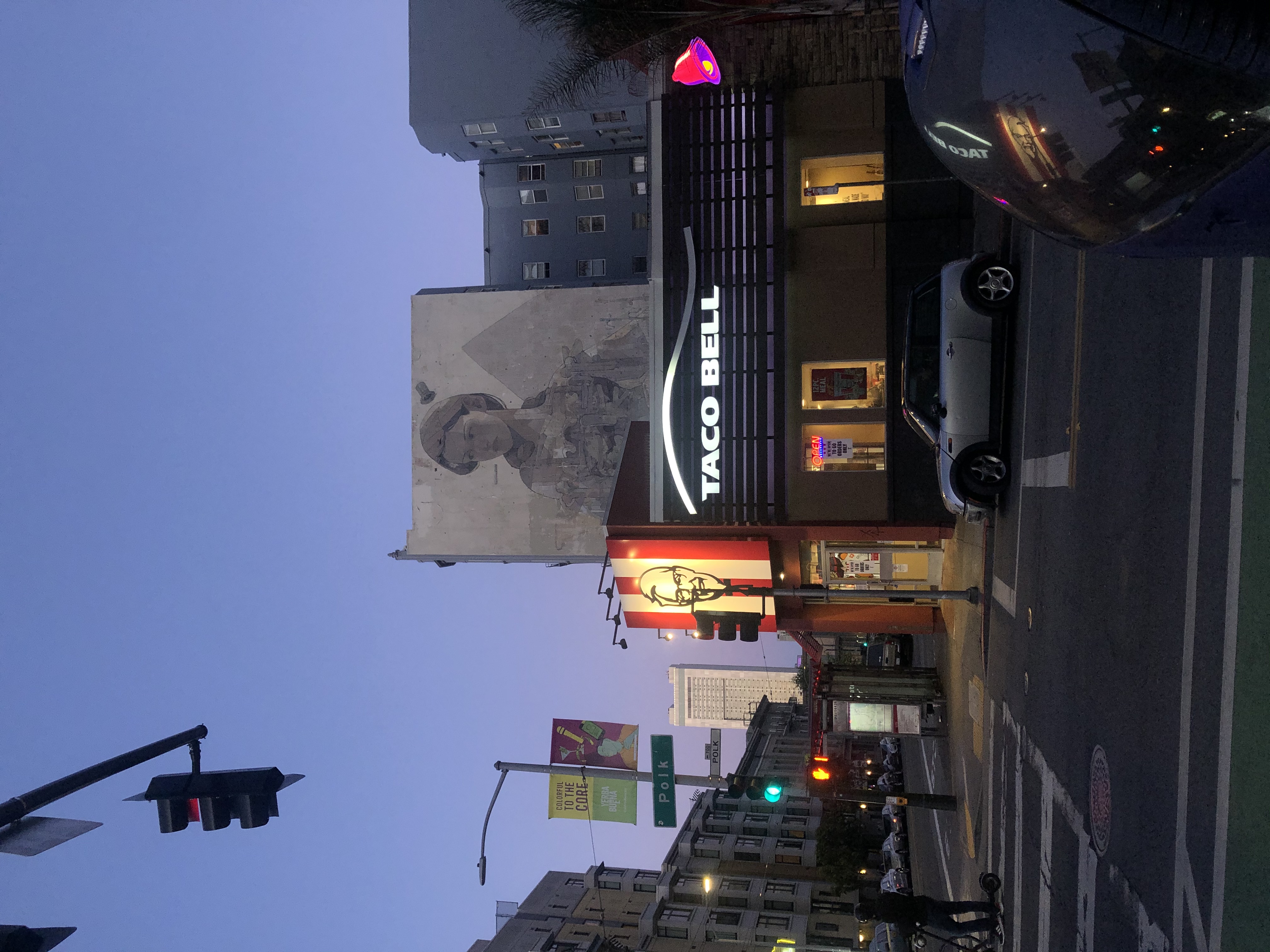 A photo I took in SF of a mural and a Taco Bell that apparently I saved.