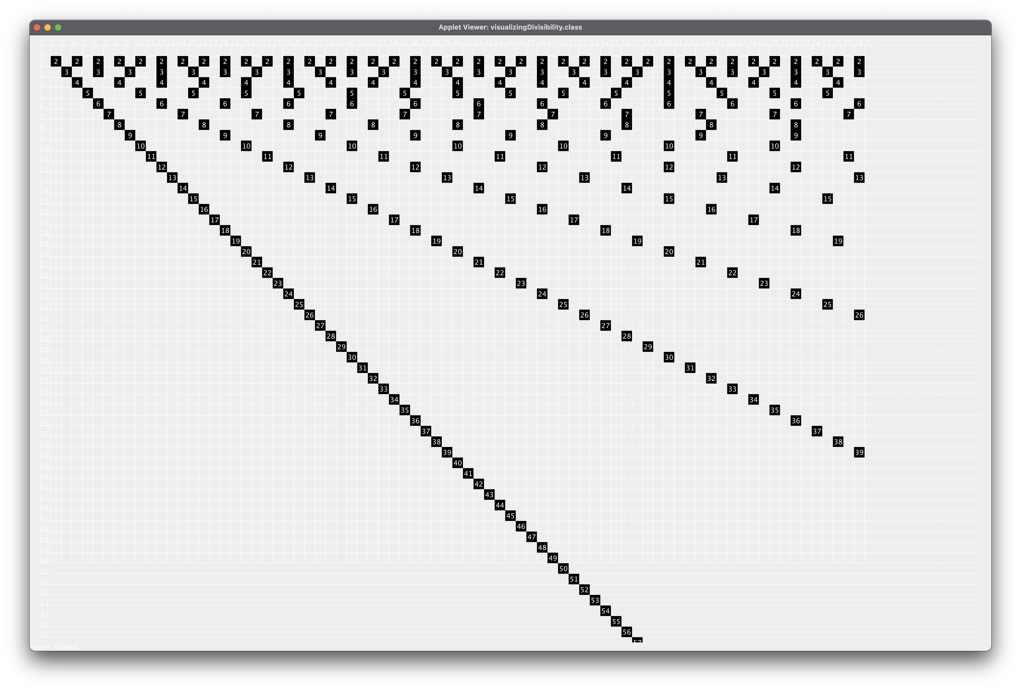 A visual respresentation of which numbers are divisible by others, as a means of gaining intuition/finding patterns.