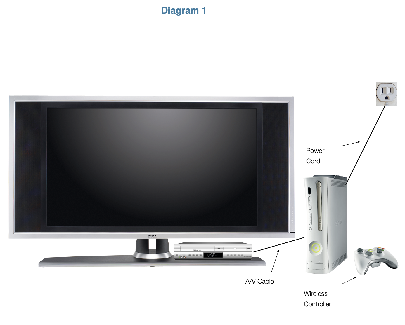 Hardware IssuesThe Xbox 360 is actually no extra hassle to the current living room arrangement. It requires nor will bring any extra wires coming out the front of the television area, therefore not further interfering with the closing cabinet doors. It actually requires less wire bulk coming out the back (see diagram 1 attached) because the Xbox 360 controller only uses bluetooth (built in) as apposed to the Wii which uses a combination of bluetooth and infrared, requiring one more wire. The Xbox 360 features a slim 3.27 inch base easily sliding and color matching it’s slightly shorter friend the Wii. The only additional hardware I plan on adding would be a second wireless controller (easily stored in the cabinet on the right). As well as Xbox 360 games (discs), which would be added onto the games stack also located in the cabinet located directly to the right.