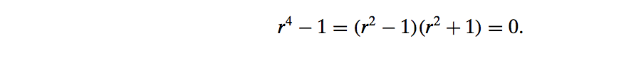 and then solve for r (good luck, you can try eyeballing it, looking at the factors of the term with no r’s, or doing long division if you can partially factor it), you should get four solutions. And then we know the general solution is of the form