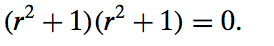 For complex solutions, that is, where you have a characteristic equation that has complex roots. You must first factor it as far as you can and then find the complex solutions. For example: